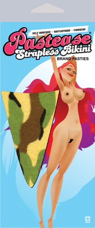 Pastease® Strapless Bikini Set with Merkin Micro and Pasties Rockstar Brand Pasties. Our most daring funwear strapless bikini features the same waterproof, skin-safe adhesive as all Pastease®. Dare to bare it with the Pastease® stick on Strapless Bikini. The fun to wear, designer beach wear that really gets the party started. Self addhesive waterproof funwear.